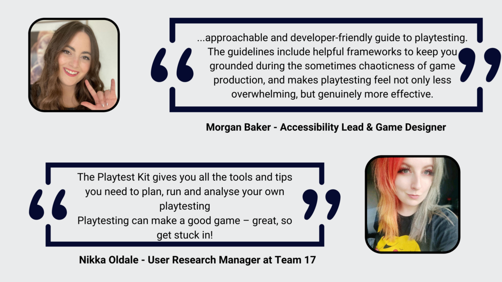 "...gives you all the tools and tips you need to plan, run and analyse your own playtesting!... get stuck in!" - Nikka Oldale- User Research Manager at Team 17